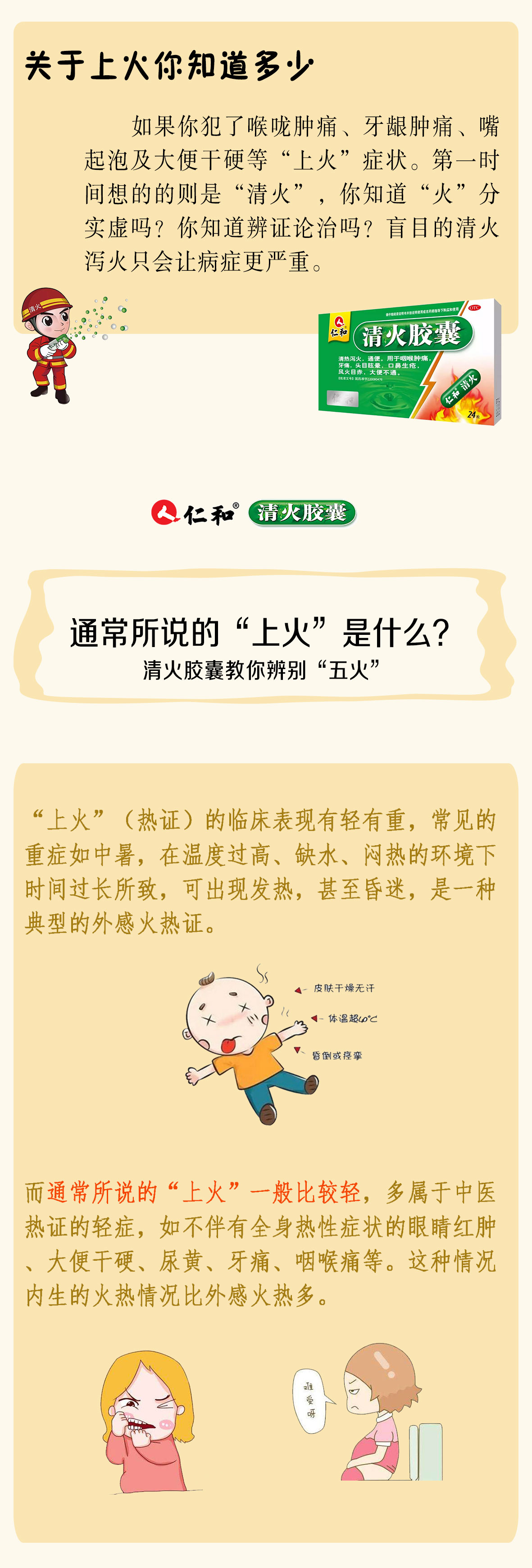 相傳在公元1900年8月,八國聯(lián)軍入侵北京,慈禧被迫逃離京城,一路提心吊膽,倉皇失措,經(jīng)過連日奔波,終于在這天到達(dá)榆林堡(今屬河北省懷來縣),借住在老百姓劉老頭家中。 次日醒來,感覺口干舌燥,拿隨身鏡子一照,竟然發(fā)現(xiàn)臉上長了痘痘,這讓一直以來注重保養(yǎng)、極度自戀的老佛爺大為沮喪。要是在宮中,早就宣太醫(yī)來開方調(diào)養(yǎng),然而現(xiàn)在是逃難時(shí)期,哪有太醫(yī)隨侍身側(cè)。 見此情景,劉老頭向慈禧推薦了一聞名鄉(xiāng)里的老中醫(yī)。老中醫(yī)醫(yī)術(shù)高明,觀察了太后的臉,接著詢問了連日來的飲食,隨即開了一劑方子,囑咐連服三天即可。太后將信將疑,吩咐隨身宮女按照老中醫(yī)開的方子抓藥、煎藥,接連服用了三天,果然痘痘消失了,雖在盛夏時(shí)節(jié),卻感覺神清氣爽,在隨后的逃難途中,每逢上火,必用次方,屢試不爽。 一年后,慈禧回到宮中,一直惦記那個(gè)老中醫(yī),有心將他任命為太醫(yī),便派人去請他入宮。可惜榆林堡的劉老頭說,老中醫(yī)就象閑云野鶴,已經(jīng)游走四方了。 慈禧聽后非常遺憾,便把老中醫(yī)當(dāng)年開的藥方交給太醫(yī)院保留存檔。而這個(gè)方子也是現(xiàn)在的清火中成藥知名者——仁和清火膠囊的前身。